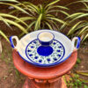 Be the first to review “10-Inch Ceramic Serving Plate with Attached Cup – Hand-Painted Blue Floral Design”