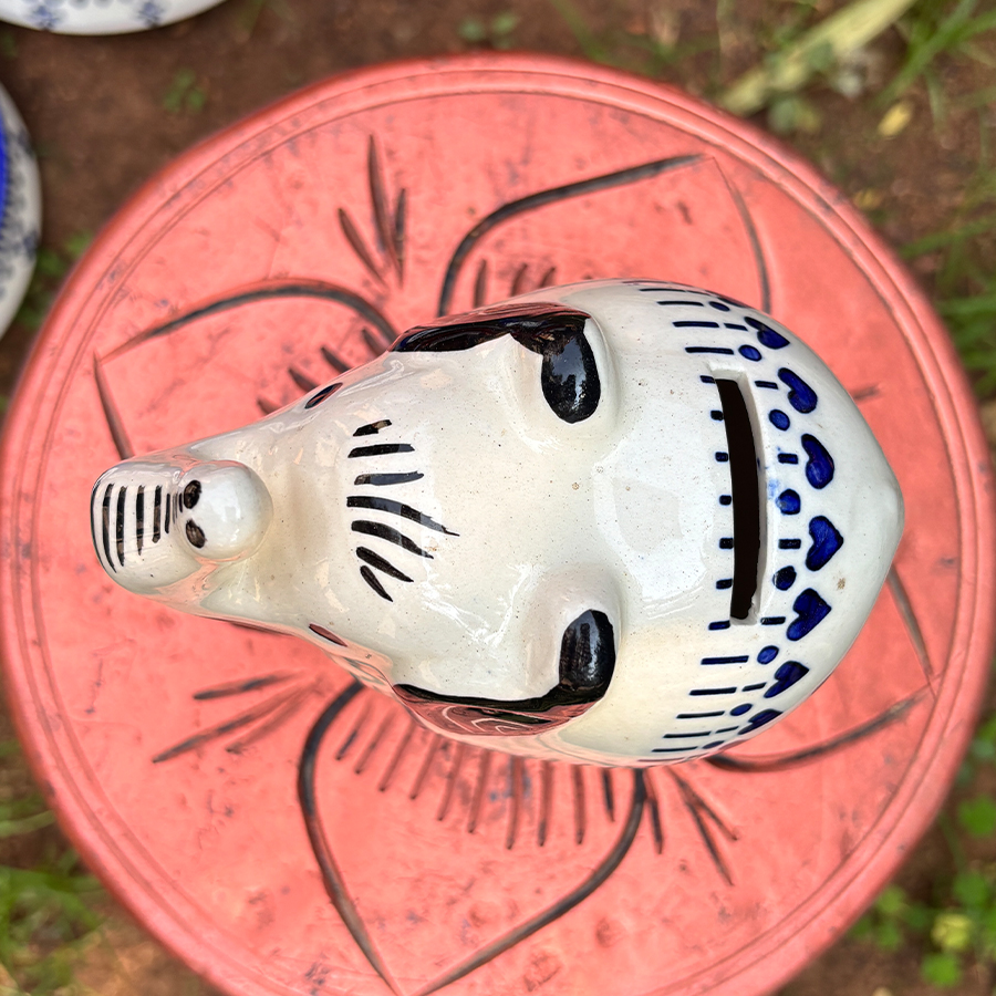 Crafted from durable ceramic, the piggy bank includes a convenient coin slot at the top, making it easy to drop in coins and build savings over time. Its compact 6-inch height makes it suitable for study tables, shelves, bedside tables, or nursery décor without taking up too much space.