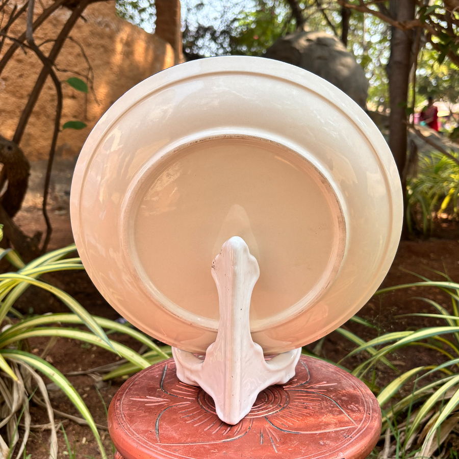 The neutral finish blends effortlessly with various décor styles, from traditional to contemporary, ensuring your displayed item remains the focal point. Both functional and stylish, this ceramic plate holder is a practical accessory for home décor enthusiasts and collectors alike.