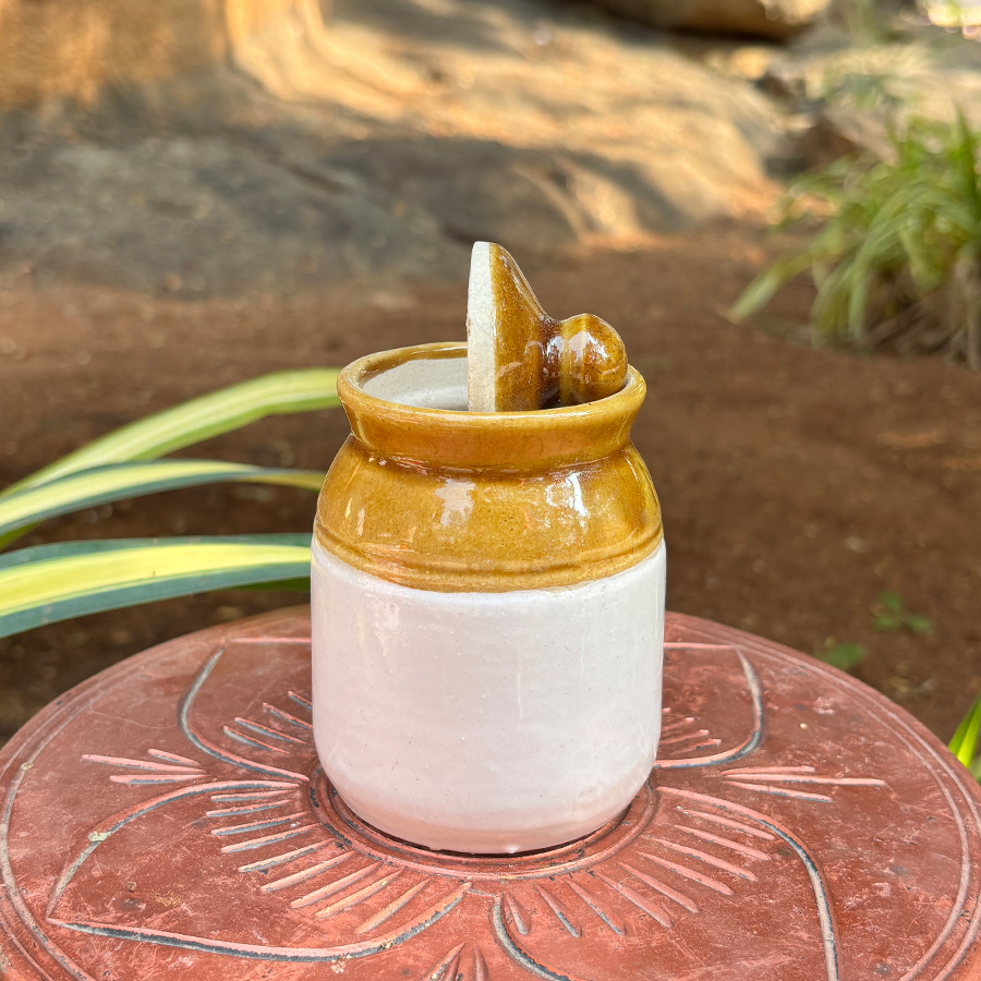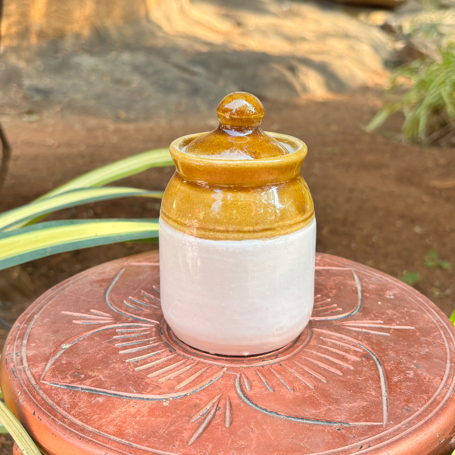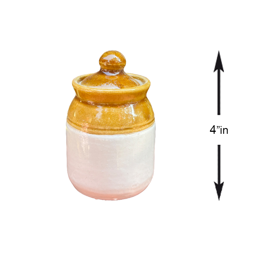 Enhance your kitchen or dining space with this beautifully crafted dual-tone ceramic storage jar. Standing 4 inches tall, this compact canister features a stunning blend of warm mustard glaze on the upper half and a soft neutral base, creating a modern yet timeless look.