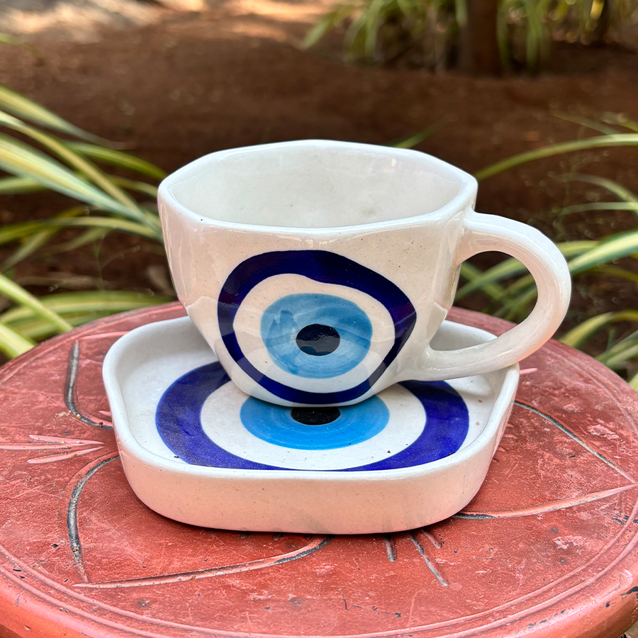Evil Eye Hand-Painted Ceramic Cup & Saucer Set