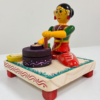 This charming wooden figurine depicts a traditional working woman engaged in daily household or professional activity, crafted with expressive features and vibrant colours. Made from high-quality Kondapalli softwood, the piece is shaped using the age-old hand-lathe (Chitiki) technique and finished with authentic Etikoppaka lacquer colours derived from natural lac resin.