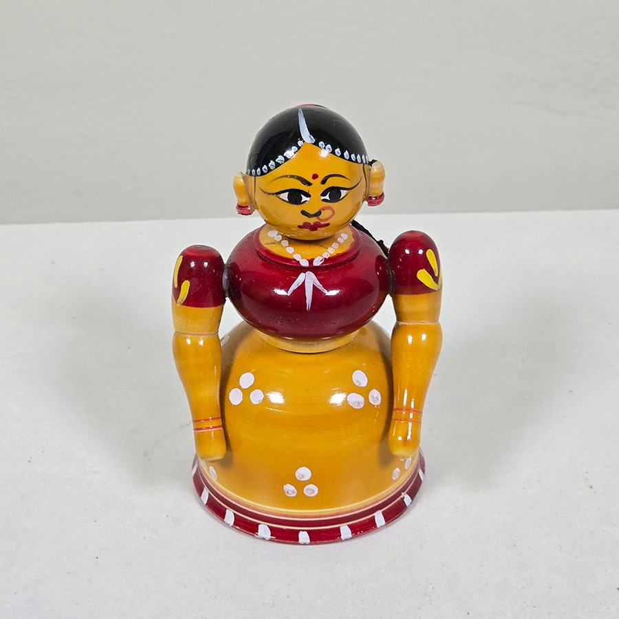 Handcrafted Etikoppaka Wooden Girl Toy – 4.5 Inches | Traditional Indian Lacquer Toy
