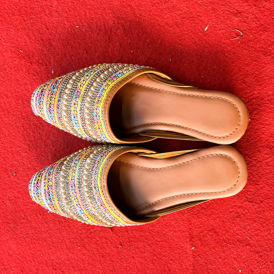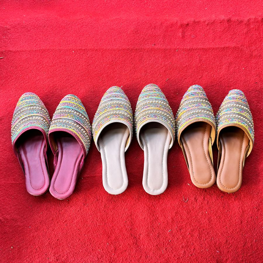 Graceful, festive, and comfortable, these Moti Work Slip-On Sandals are a perfect blend of tradition and style, crafted to make every step shine with elegance.