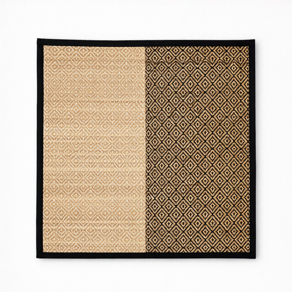 Add elegance and character to your living space with this beautifully handwoven dual-tone floor mat. Designed with two contrasting sections—one featuring a subtle natural weave and the other showcasing detailed geometric patterns—this mat creates a visually striking and stylish look.