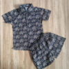 The set features a half-sleeve button-down shirt with a front pocket paired with matching elastic waist shorts, giving a trendy and coordinated look. The beautiful elephant print design adds a playful and charming touch, making it perfect for kids.