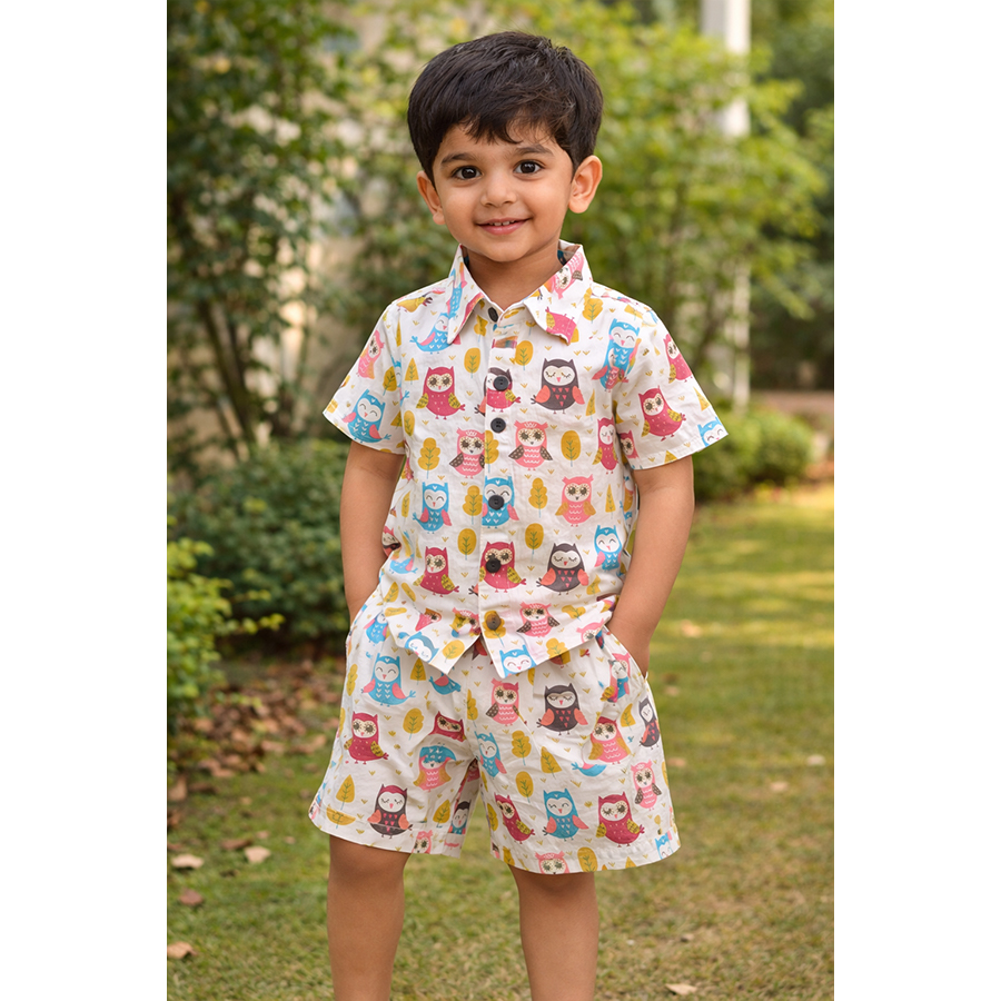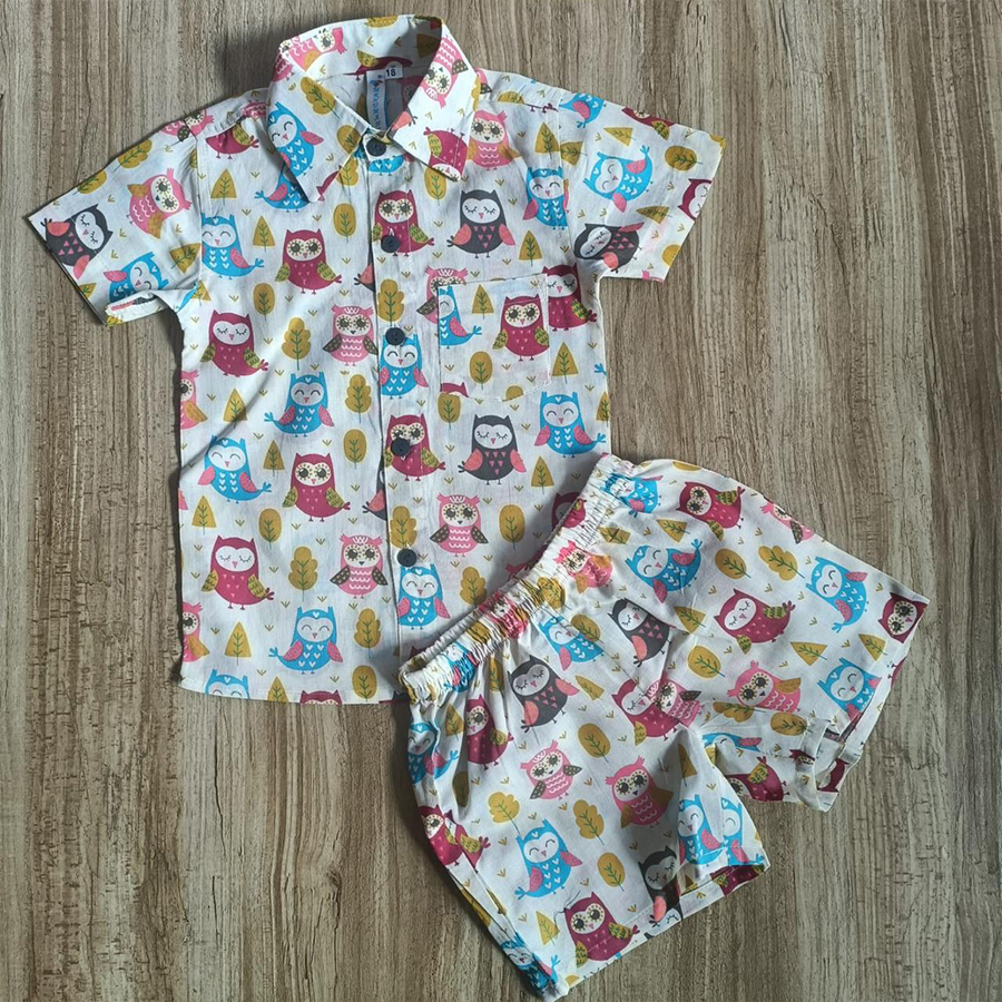 The set includes a half-sleeve button-down shirt with a pocket and matching elastic waist shorts for a perfect fit. The unique tribal hand block print design adds a traditional and trendy touch, making it ideal for casual outings, playtime, and summer wear.