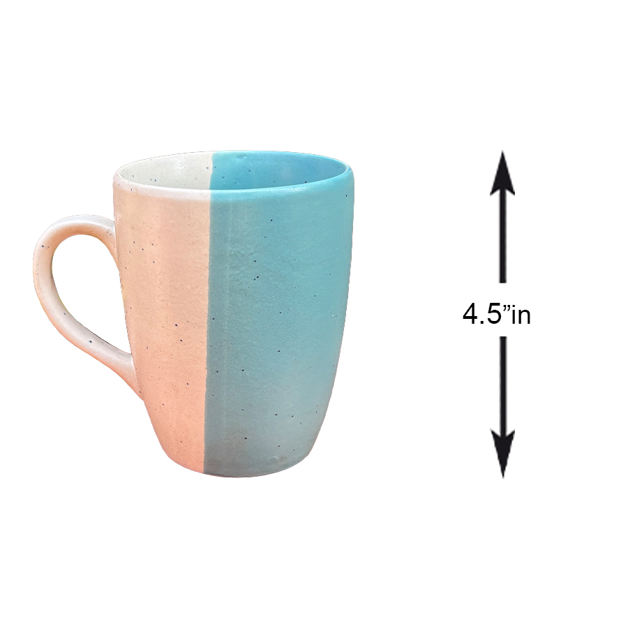 Bring a modern touch to your drinkware collection with this elegant dual-tone ceramic mug. Standing 4.5 inches tall, this mug features a clean, minimalist design with a beautiful split-color finish in soft pastel shades. The subtle speckled texture adds character and charm, making it both stylish and unique.