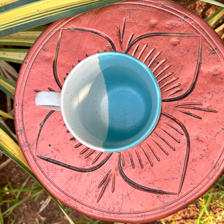 Stylish 4.5-inch ceramic mug featuring a contemporary dual-tone pastel finish. Perfect for coffee, tea, and everyday use.