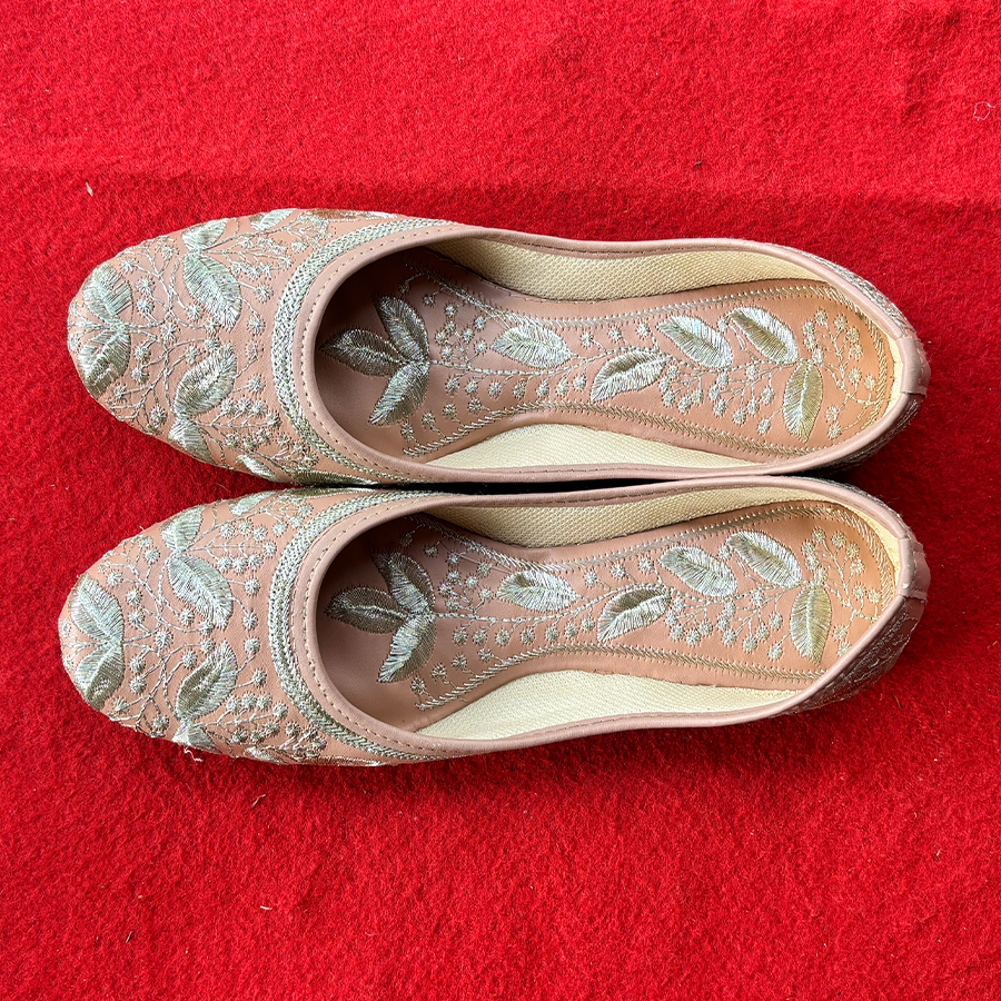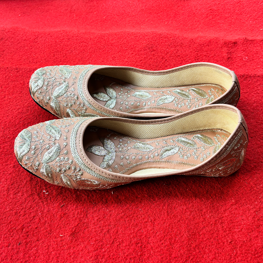 Step into timeless charm with these exquisite Zari Judi embroidered flats.