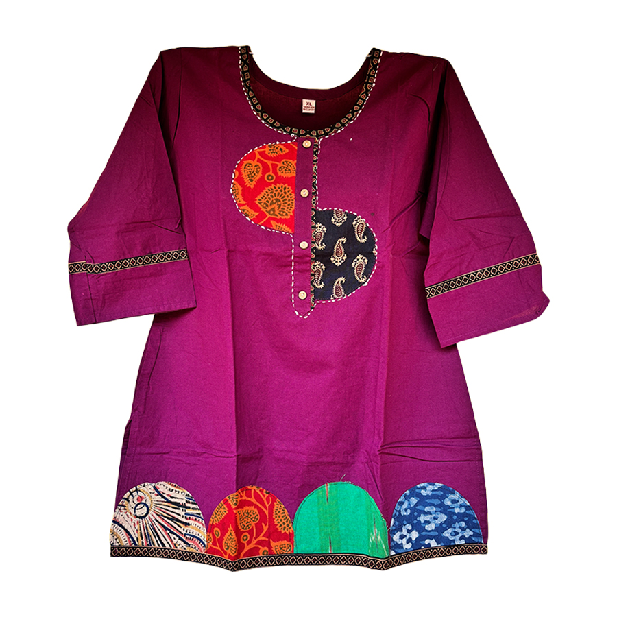Experience the beauty of India’s ancient textile heritage with this Purple Ajrakh Cotton Kurti, crafted using original Ajrakh cloth. Ajrakh is a centuries-old hand block printing technique practiced by artisans of Kutch and Sindh regions, known for its intricate patterns, natural dyes, and geometric symmetry.