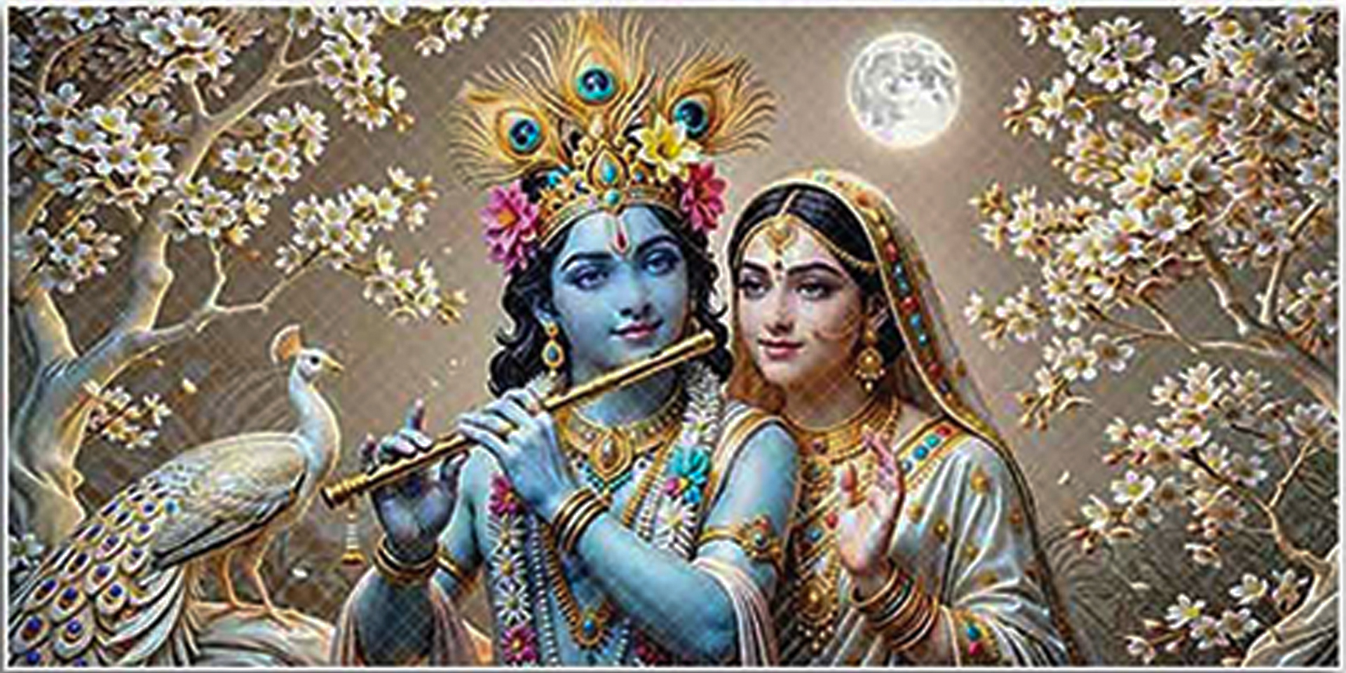 Enhance your living space with this Indianara Sparkled Radha Krishna Divine Art Print, beautifully depicting the eternal bond of Lord Krishna and Goddess Radha amidst intricate floral and temple-inspired motifs. The artwork radiates peace, devotion, and divine grace, making it a perfect spiritual addition to any interior.