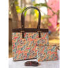 Be the first to review “Tote bag, floral print canvas body , Size 13″ wide X 11″ long with 5 ” base”