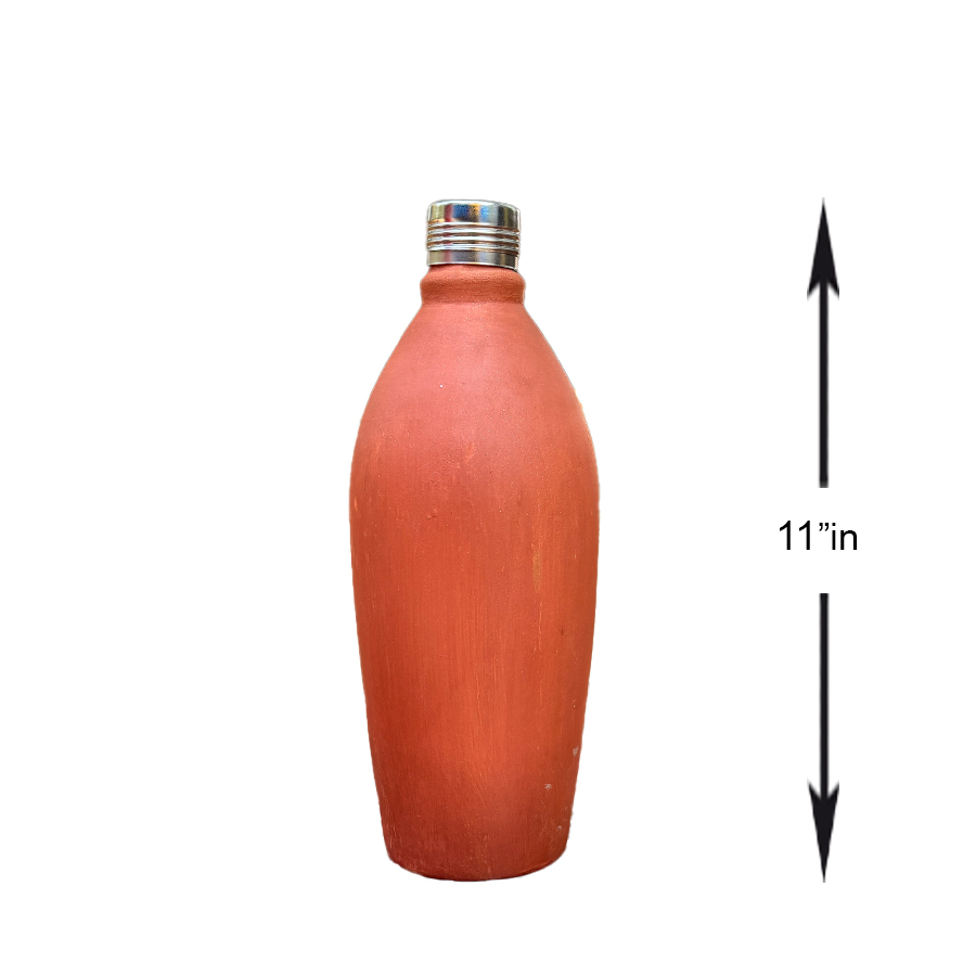 11-Inch Natural Clay Water Bottle with Steel Cap