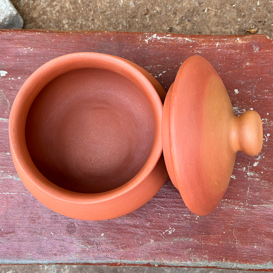 Free from chemical glazes and coatings, this eco-friendly clay pot supports healthy cooking and is suitable for gas stove, traditional chulha, and low-flame cooking. It also doubles as a rustic serving vessel for a traditional dining experience.