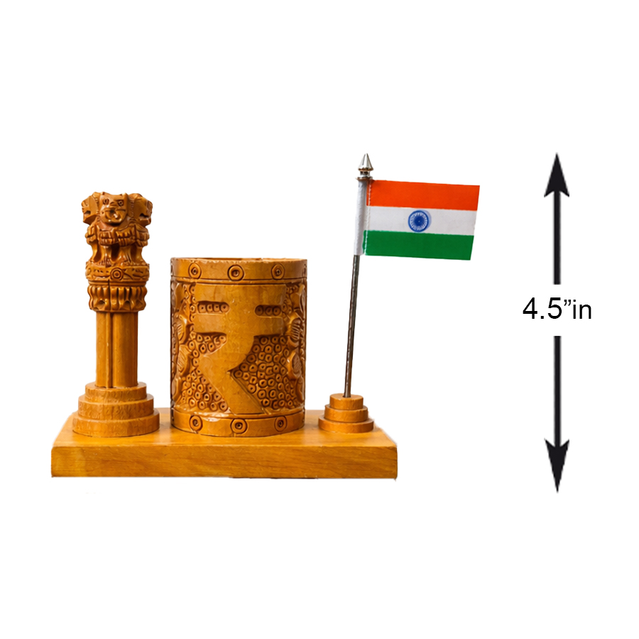Perfect for professionals, students, government employees, or as a patriotic gift for national occasions such as Independence Day and Republic Day, this 4.5-inch wooden pen stand is both a practical accessory and a meaningful decorative piece.