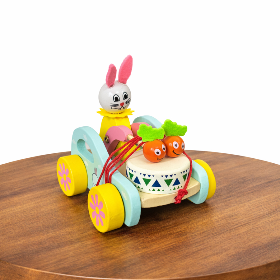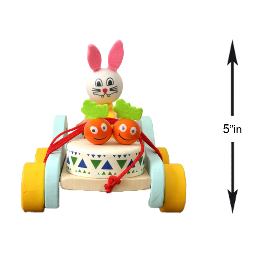 Perfect as a birthday gift, return gift, or nursery décor accent, this wooden bunny pull cart toy brings smiles, color, and creativity into every play session.